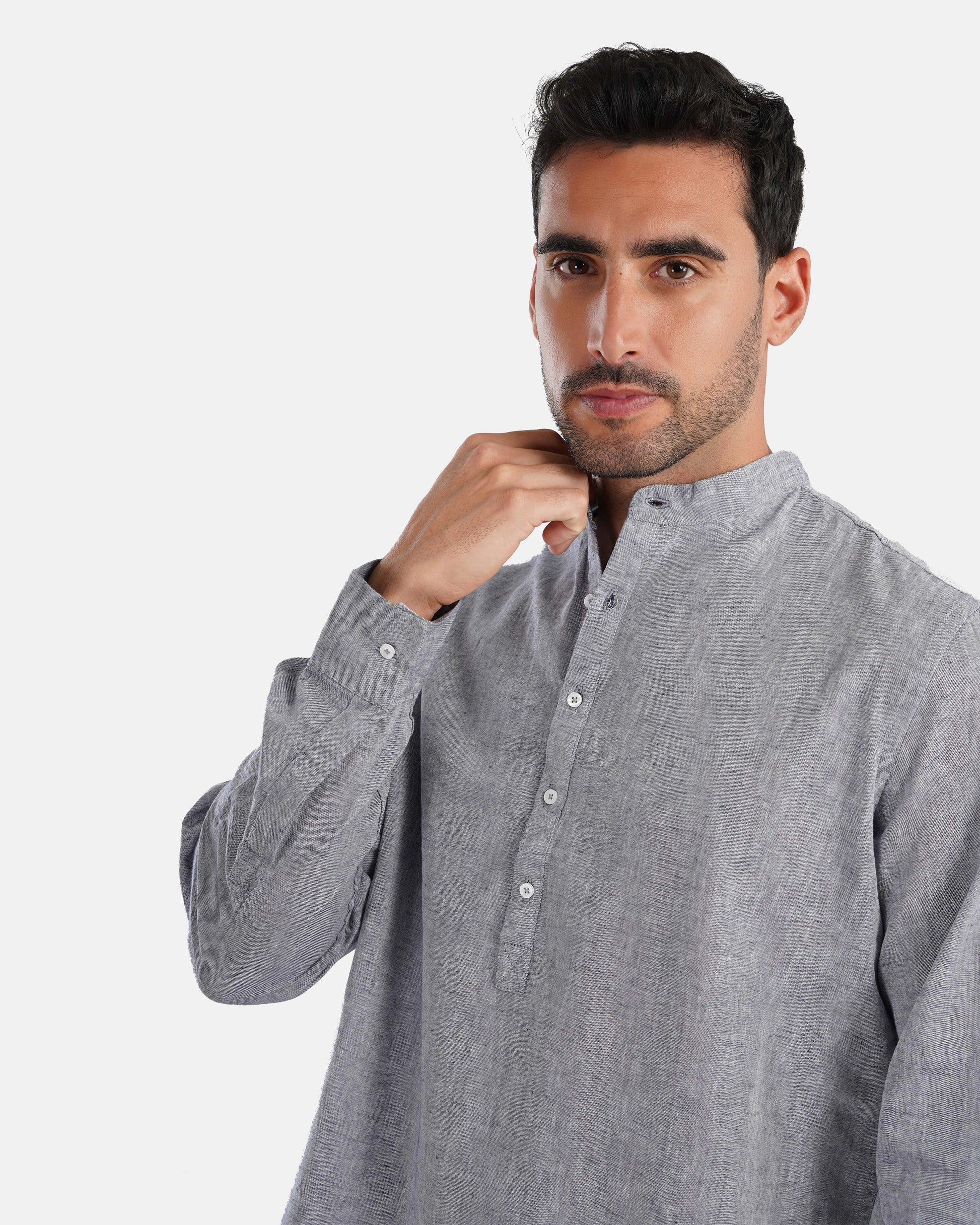 Half Collar Linen Shirt - Grey