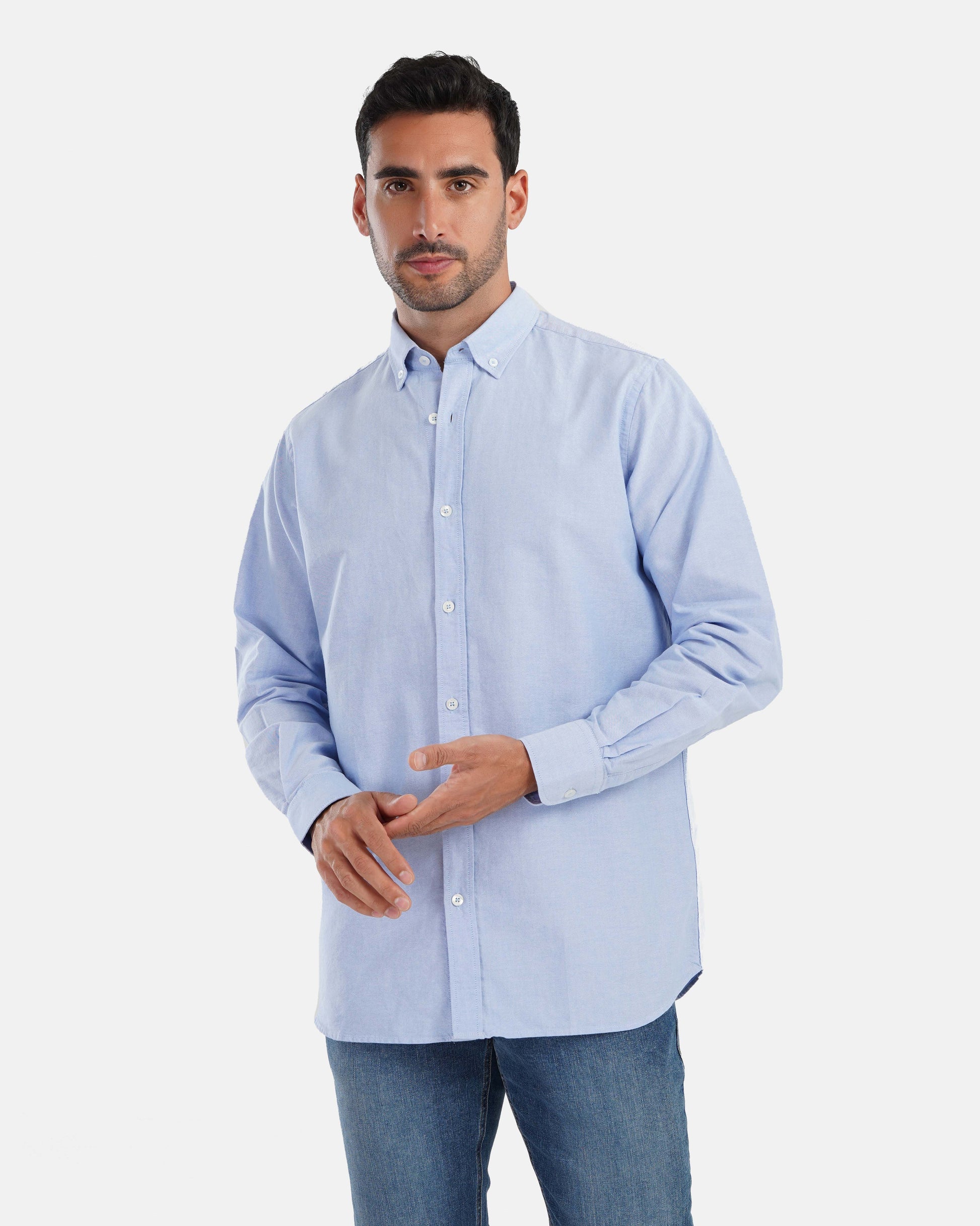 Long sleeves plain linen Shirt - Baby Blue