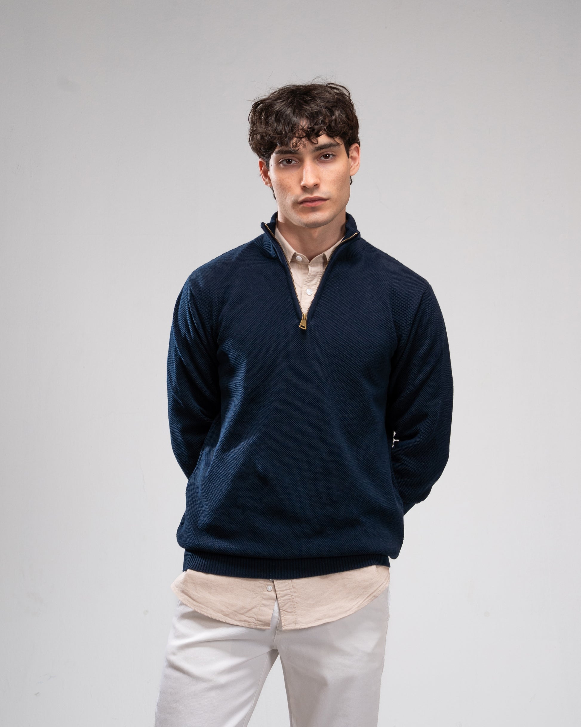 Pique Knit Quarter-Zip Sweater - Navy Blue