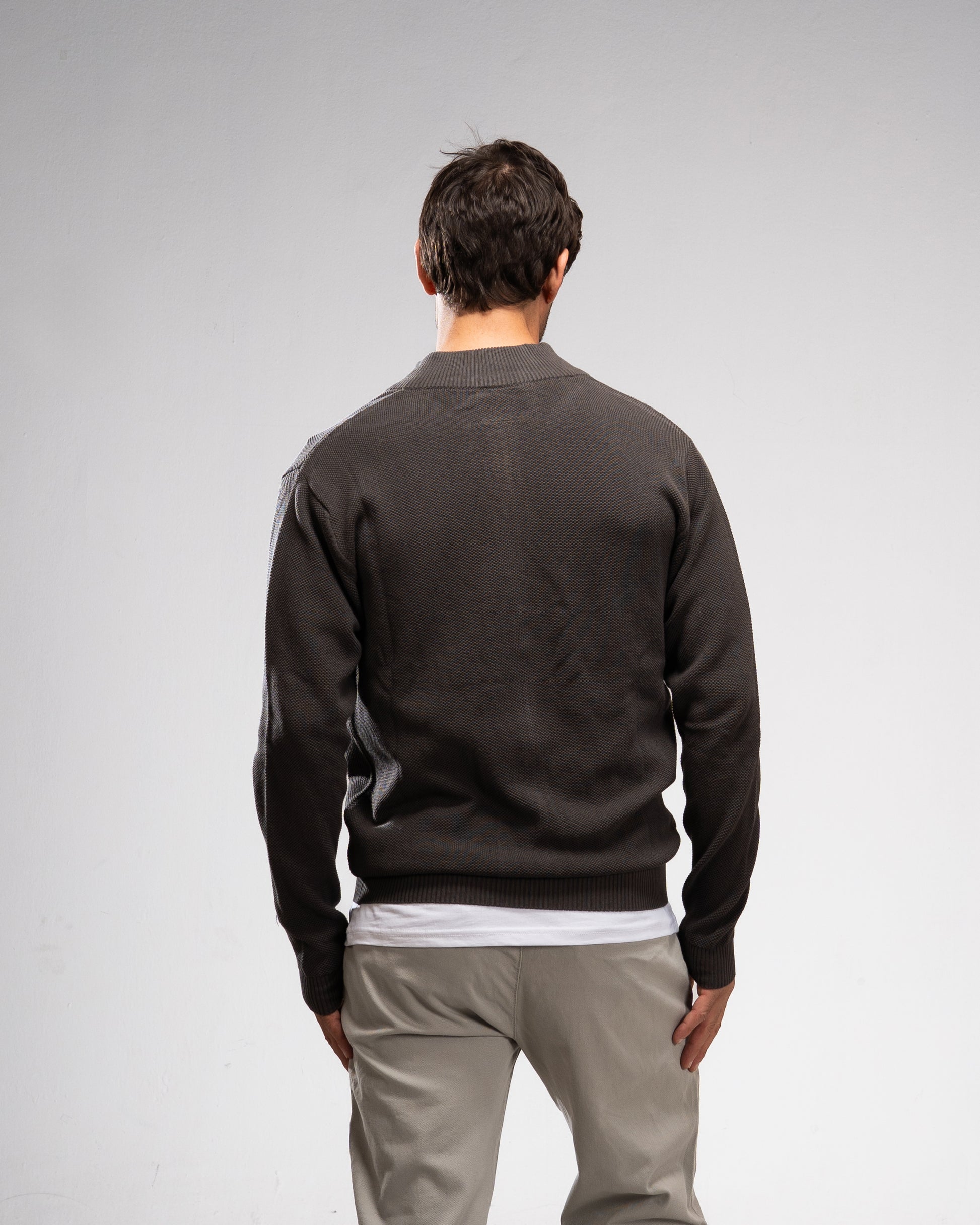 Pique Knit Full-Zip Sweater - Khaki